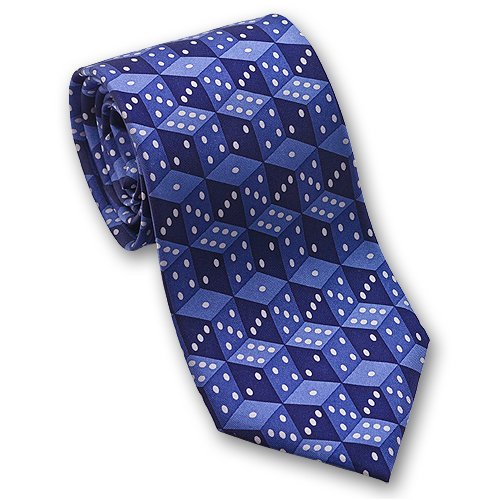 An odds on favorite in any wardrobe. Blue dice cleverly stacked create a subtle, wearable pattern. Perfect for the poker player in all of us men. 100% silk. Hand finished in the USA.