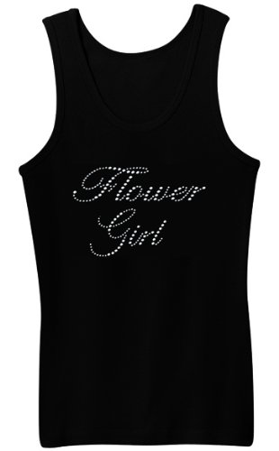 The Detailed Description of Flower Girl Rhinestone Juniors Tank Top, Medium, Black