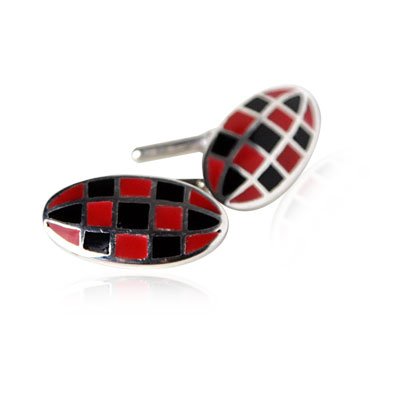 Italian-inspired rectangular black and red checkerboard oval cufflinks. Unique design features rich checkerboard pattern with black and red enamel in a sterling silver mount. These are a true staple to anyone's collection. The pictures do them no justice. Each pair is finished by hand to ensure a quality, lasting pair. We find these unique designs so you are sure to stand out from the crowd. They measure approximately 7/8" x 3/8". Nice lightweight makes it ideal for any shirt or blouse. Set in 925 sterling silver! Covered by Cuff-Daddy's product guarantee Great for wedding parties!