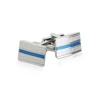 Elegant silver-tone cufflinks with bold blue enamel stripe. Nice use of textures for the background of the cufflinks and underneath the enamel. These unique cufflinks will be a hit with either jeans or a suit. Cufflinks arrive in elegant gift box. Finished with silver-tone so they'll never tarnish. Put away your silver polishing cloth! Great for wedding parties!