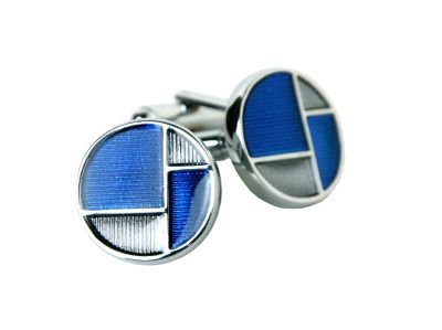 The Detailed Description of Retro Reflective Blue & Gray Enamel Round Silver Cufflinks by Cuff-DaddyFeatures
