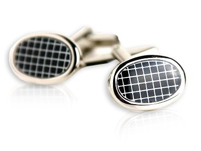 The Detailed Description of Classy Oval Enamel Black Screen Cufflinks Set silver-tone by Cuff-DaddyFeatures