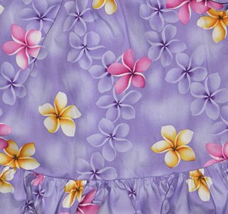 The Detailed Description of Puff Sleeve Cabana Set - Airbrush Plumeria Hawaiian Aloha Elastic Neck Dress & Matching Panty 2PC Set in Purple - 18 MonthsFeatures