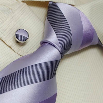 The Detailed Description of Purple Striped Tie for Men Birthday Present Man Handmade Silk Neckties Cuff Links Set A1047Features