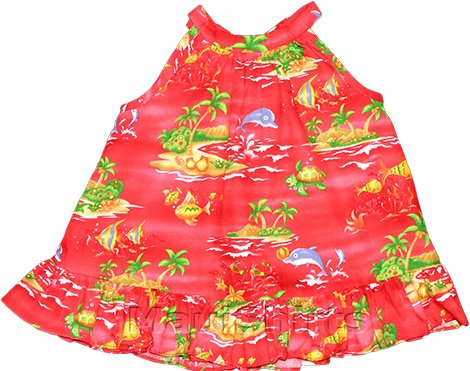 The Detailed Description of Halter Cabana Set - Underwater Cartoon Island Halter Dress with Matching Panty Hawaiian Aloha 2PC Set in Red - 12 MonthsFeatures