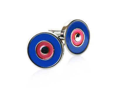 The Detailed Description of Bold Blue and Red Bulls eye Silver Tone Cufflinks by Cuff-DaddyFeatures