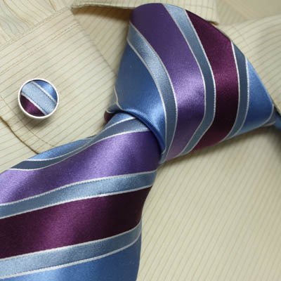 The Detailed Description of Purple Striped Ties for Men Blue Stripes Xmas Gift Mens Style Silk Ties Cufflinks Set A1051Features
