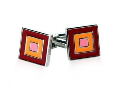 The Detailed Description of Concentric Enamel Maroon, Pink, and Orange Square Cufflinks by Cuff-DaddyFeatures