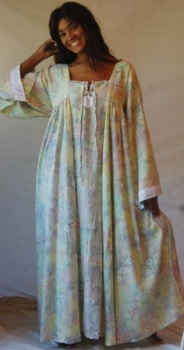 No risky business here, this is a Lotustraders' perennial favorite and a fashion classic. And here's why:* easy-to-wear comfort* flattering to a wide array of figures* classy, elegant style* classic design that never goes out of style* versatile style that works for casual or formal occasionsIt's designed with a flattering squared neckline (front and back,) long, wide sleeves, an easy to wear raised waist and pleats that fall down from the bust to create a flattering flat front. The skirt is especially full and flowing.Made up in Lotustraders' fabulous rayon batik, a soft and silky fabric with a subtle, wrinkle-resistant texture and a wonderful flow. Satin jacquard trim at the inset lacings and cuffs adds a subtle, monochromatic textural contrast and just the slightest hint of glamour.Looking for a dress that you can wear for a wide variety of occasions and won't quickly be out of style? Modify the look of this amazing dress with a belt, scarf or shawl. There are so many different ways to wear it!This is a 'sure bet' fashion classic. You'll be absolutely lovely in this for a long, long time.