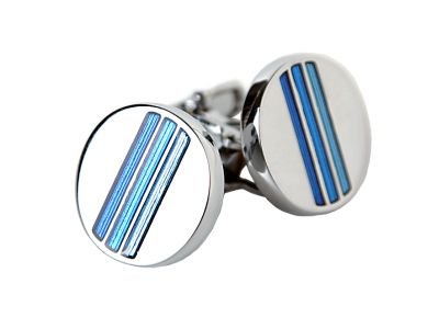 The Detailed Description of Trendy Tonal Blue Enamel Round Silver Cufflinks by Cuff-DaddyFeatures