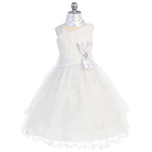 The Detailed Description of Chic Baby Little Girls 10 White 1 Shoulder Sequined Top Tulle SkirtFeatures