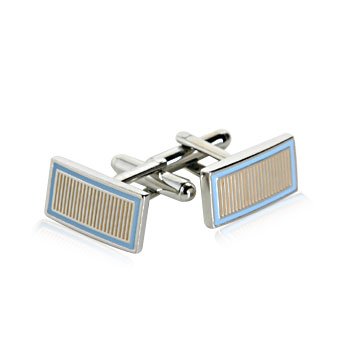 There is something very elegant and understated that draws me to this pair of cufflinks. It might be the narrow vertical stripes filled with a tan colored enamel or the design. Frankly, something about tan and light blue together looks very polished. These would look dynamite with any French cuff shirt! Cufflinks arrive in elegant gift box. Finished with silver-tone so they'll never tarnish. Put away your silver polishing cloth! Great for wedding parties!