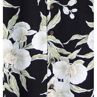 The Detailed Description of Plus Size Round Neck Long Dress - White Orchid Hawaiian Aloha Caftan/Kaftan Style Evening Dress in Black - 4X Plus
