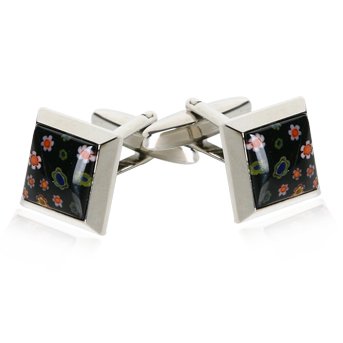 These cufflinks are truly special, featuring the popular millefiori glass created in Murano, Italy - a small island off Venice. In Italian, Millefiori means "one thousand flowers. This is certainly an apt description for the unique glass created by the Millefiori process. The glass is formed from multiple canes of colored glass that are cut crosswise into sections, arranged in a pattern then, fused together. Because our designer makes new selections and arrangements for each finished piece, each one is unique and the pattern and color of the one you receive may vary somewhat from the picture. This is a great way to celebrate art, by wearing a unique piece on your wrists. Suitable for both men and women. Pair with any classic shirt and pull out similar or complementary hues in a shirt or tie. Each pair is finished by hand to ensure a quality; lasting pair. We have this glass featured in many different pairs so please browse our site. Cufflinks arrive in high-quality presentation box. Nice lightweight feel works well with French cuff shirts and blouses. Set silver-tone setting so it never needs polishing. Great for wedding parties!