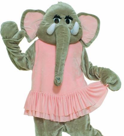 This friendly, silly elephant will be a big hit at your next party or event! Soft sculpture mascot-style Elephant costume dressed in pink. Includes a full covered padded head, feet and jumpsuit with attached pink dress.Standard size only.