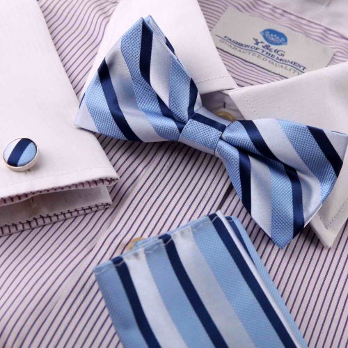 The Detailed Description of Blue Silk Bowtie Discount Bowtie Dodger Blue Stripes Silk Pre-tied Bowtie, Cufflinks,handkerchiefs Present Box Set By Epoint EBC1017Features