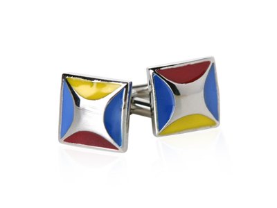The Detailed Description of Designer Blue, Maroon, and Yellow Enamel Cufflinks by Cuff-DaddyFeatures