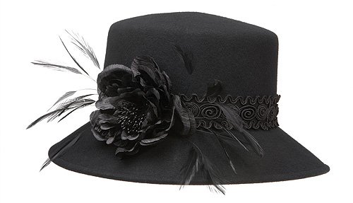 Betmar Flower and Lace- A wide brimmed beauty with flower flourish, this is a great hat for fancy occasions. Swirls of lace along the band give it artistic flair.