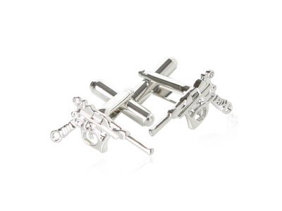 Need to "pack heat" just to go to Goldman Sachs? This is the pair for you. Someone cuts you off on the highway? Show them your French Cuffs with these funny cufflinks. Conservative enough for the office; but far from boring. Each cufflink is a miniature replica of a pistol and a BIG conversation piece. Pair with any classic shirt and pull out similar or complementary hues in a shirt or tie. Each pair is finished by hand to ensure a quality; lasting pair. Cufflinks arrive in hiqh-quality chrome presentation box. Nice lightweight feel works well with French cuff shirts and blouses. Set in rhodium silver frame so it never needs polishing. Covered by Cuff-Daddy's Lifetime product guarantee. Great for wedding parties!